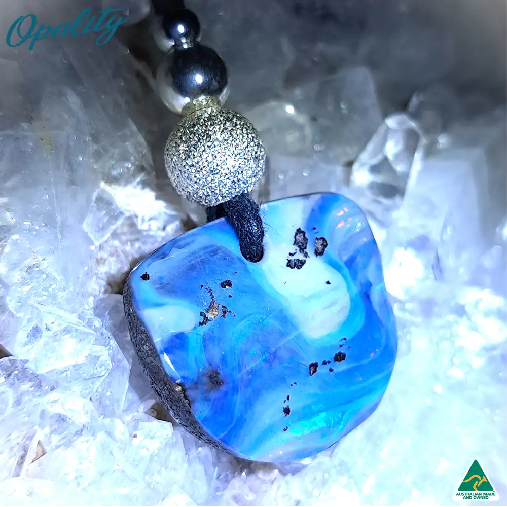 Natural Solid Queensland Boulder Opal Pendant with adjustable waxed cotton cord necklace