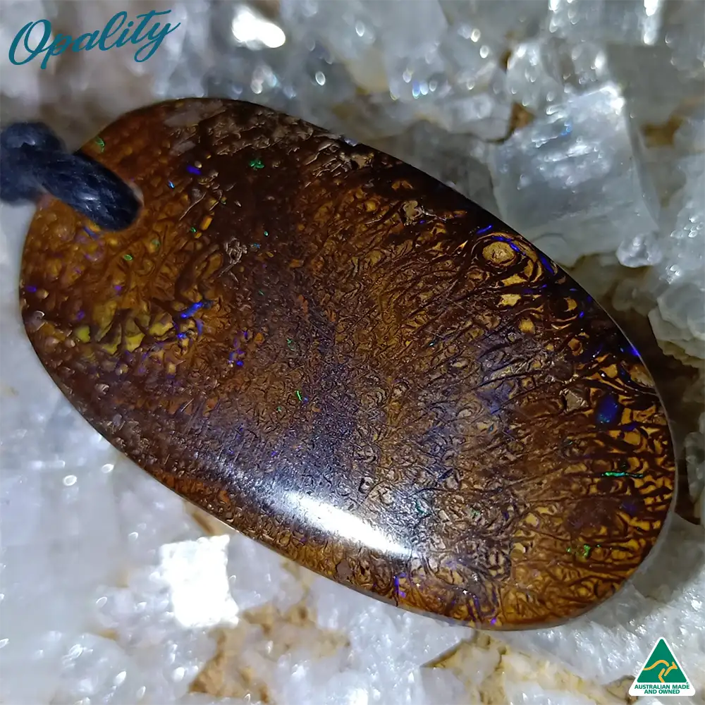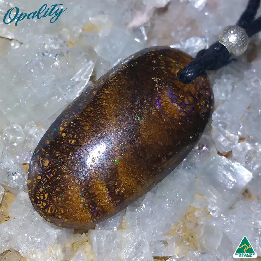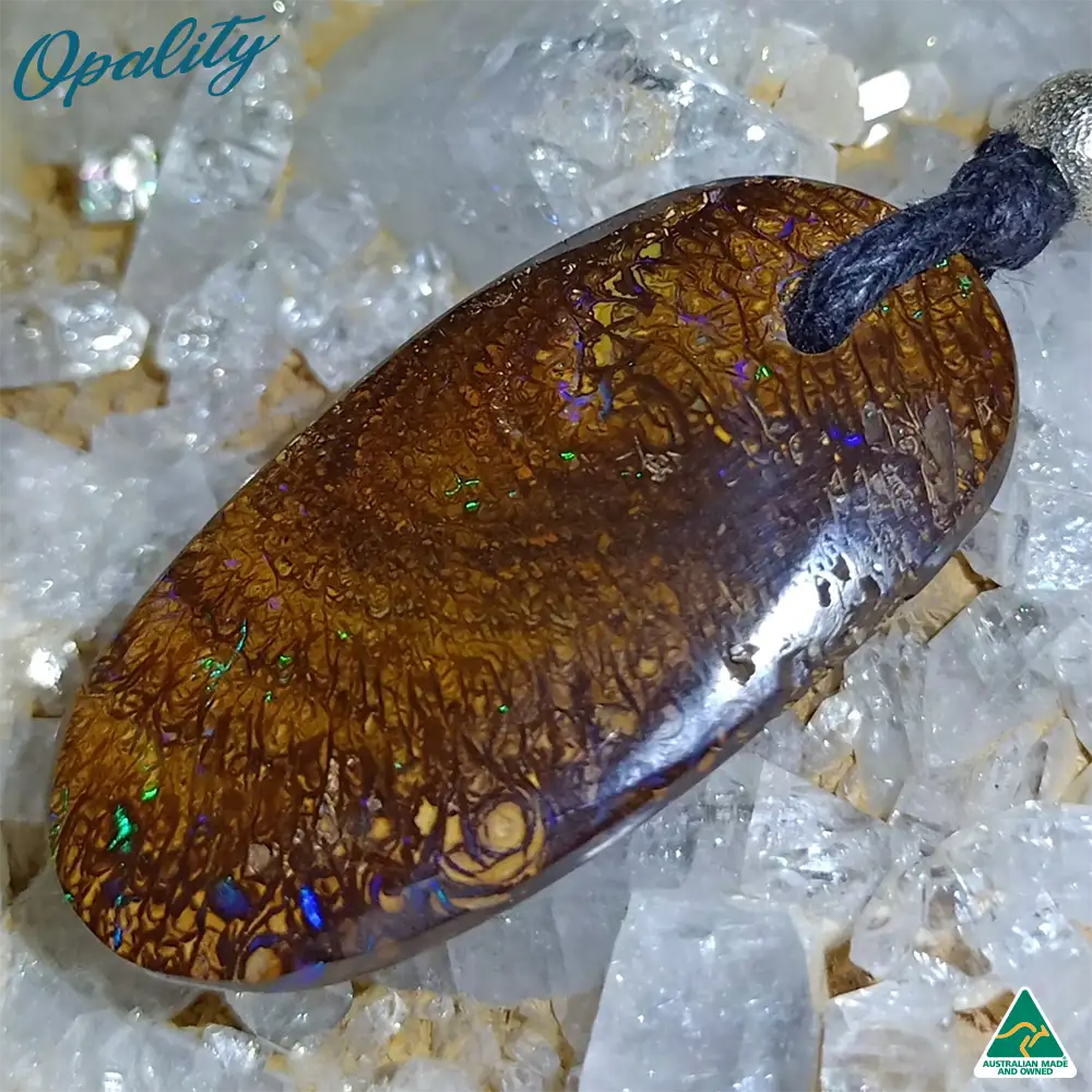 Natural Solid Queensland Boulder Opal Pendant with adjustable waxed cotton cord necklace