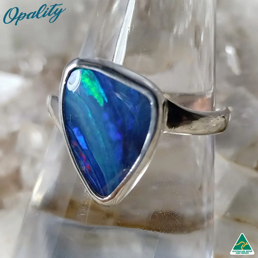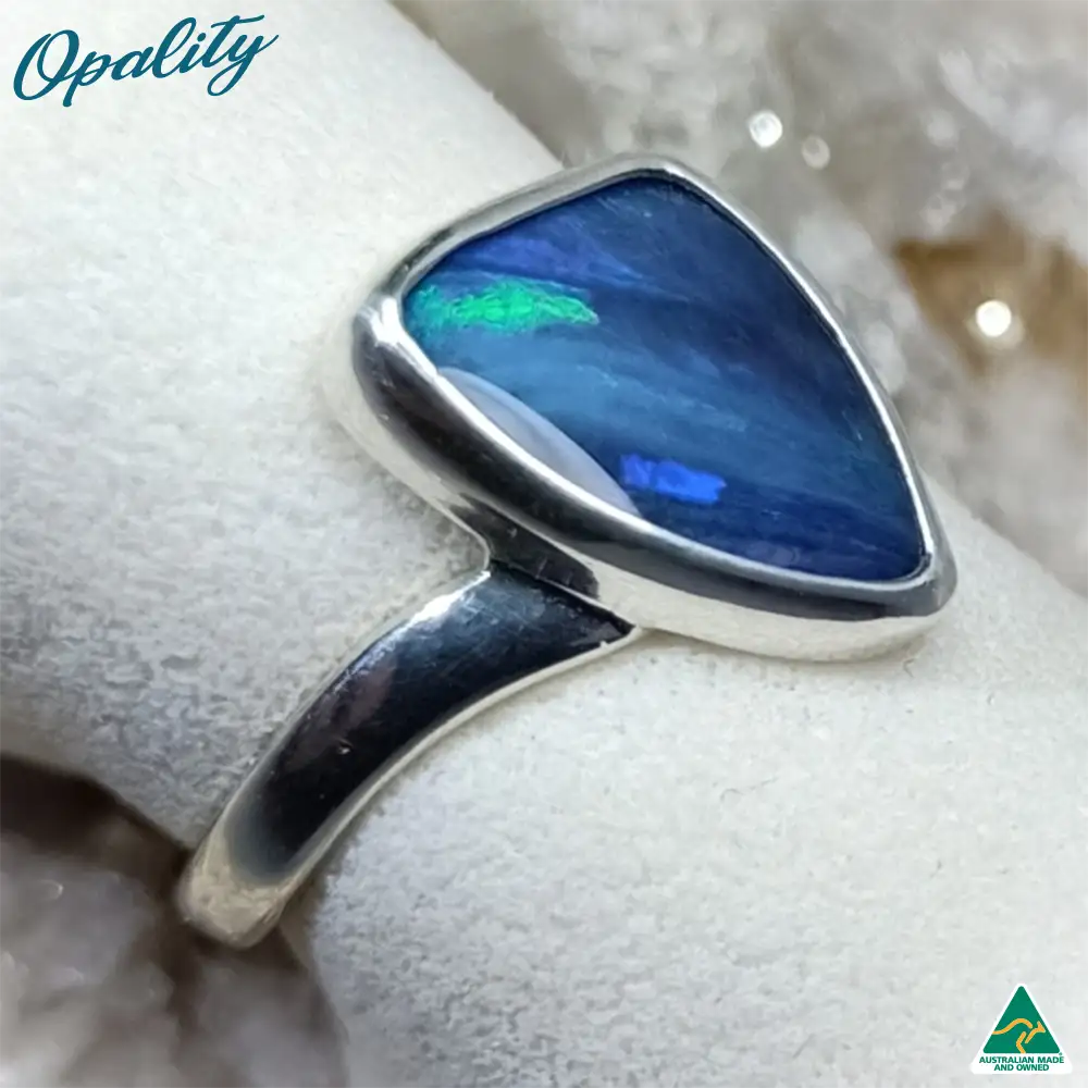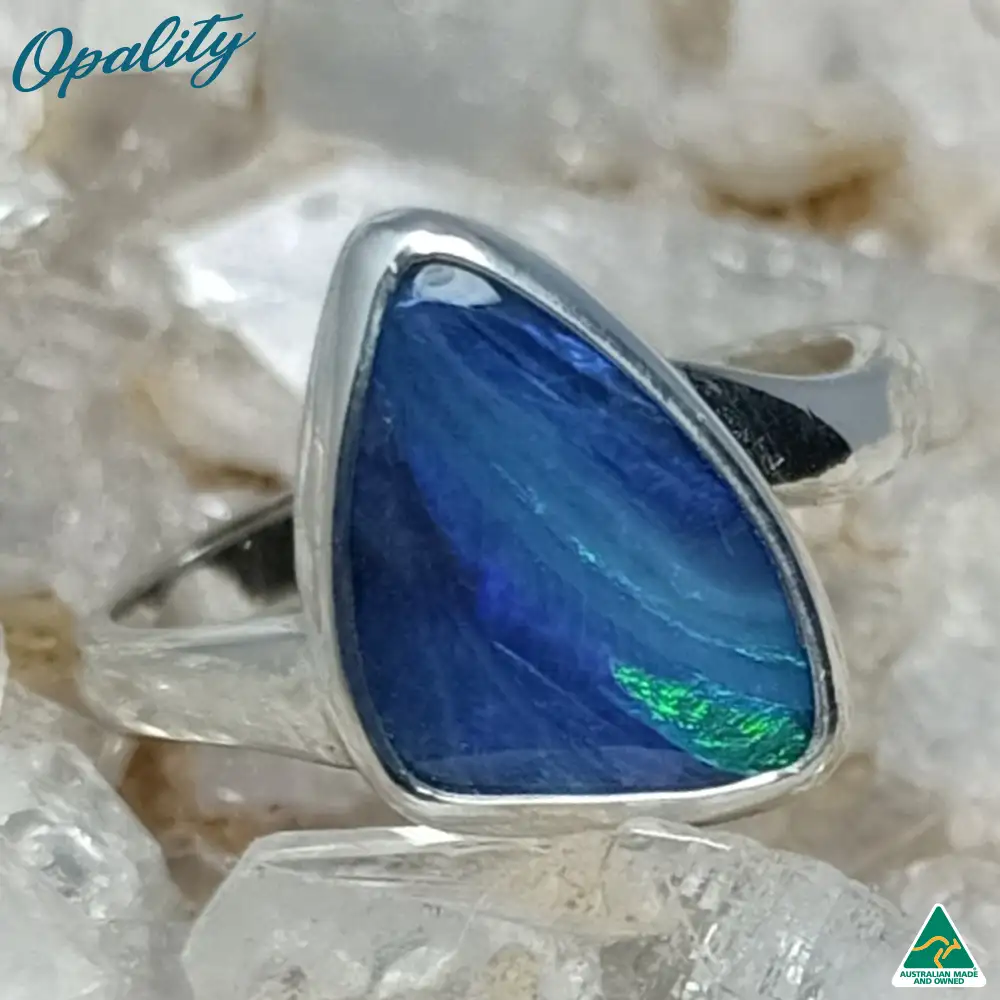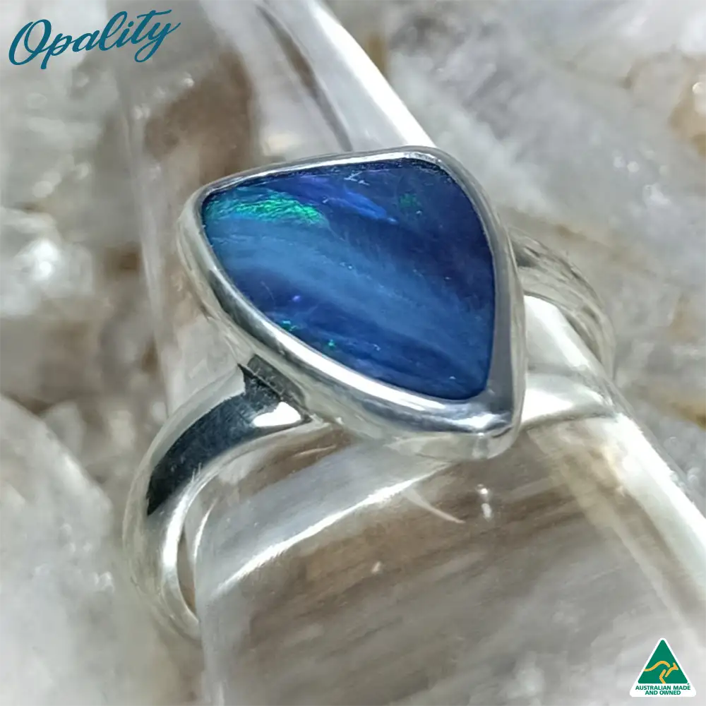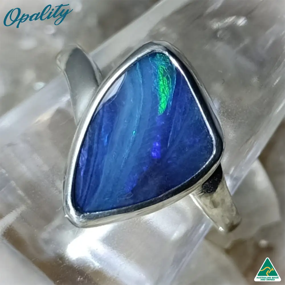 Natural Solid Winton Queensland Boulder Opal & Sterling Silver Ring