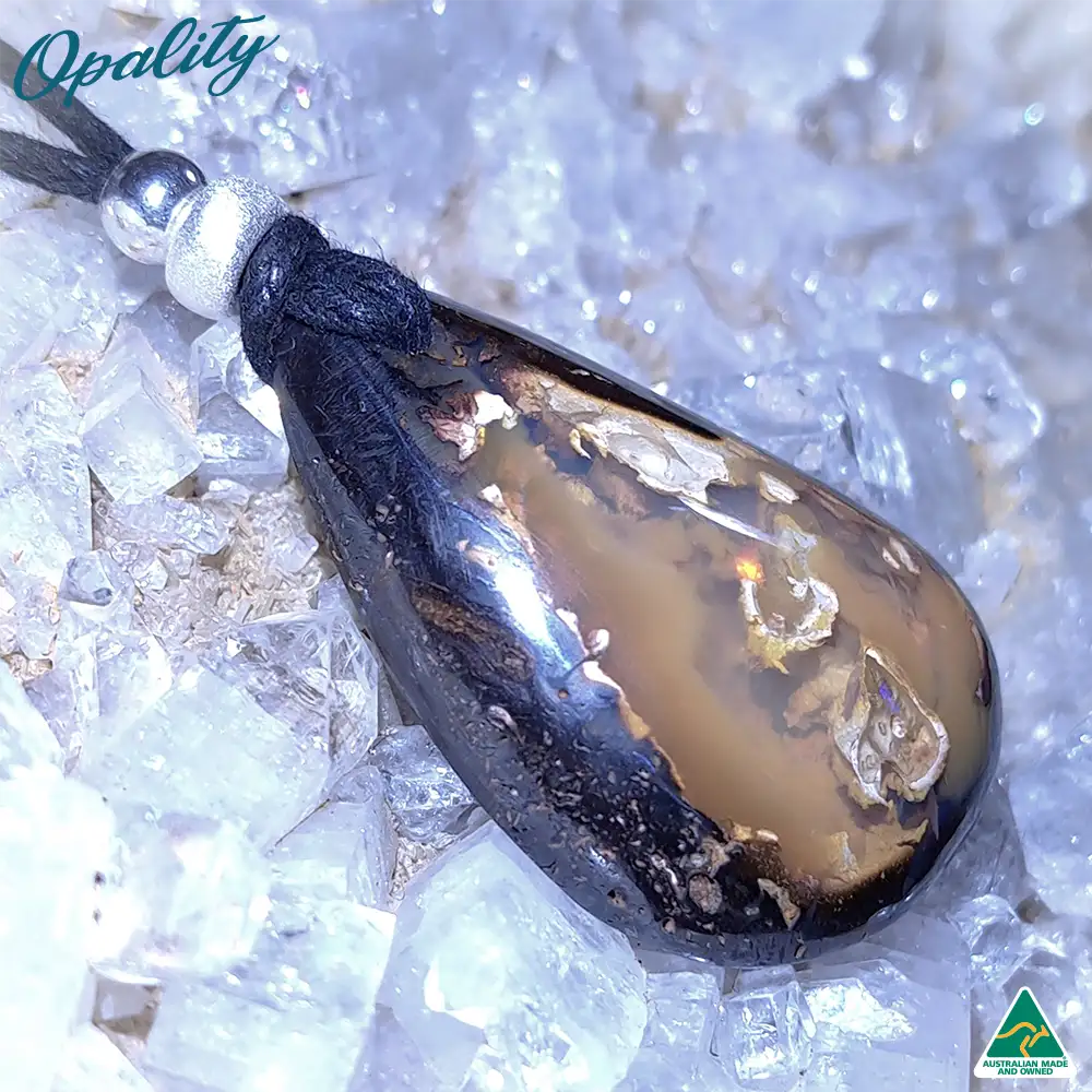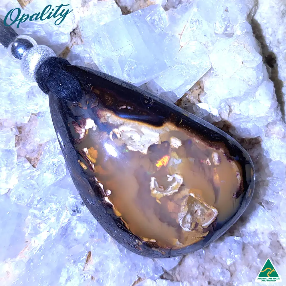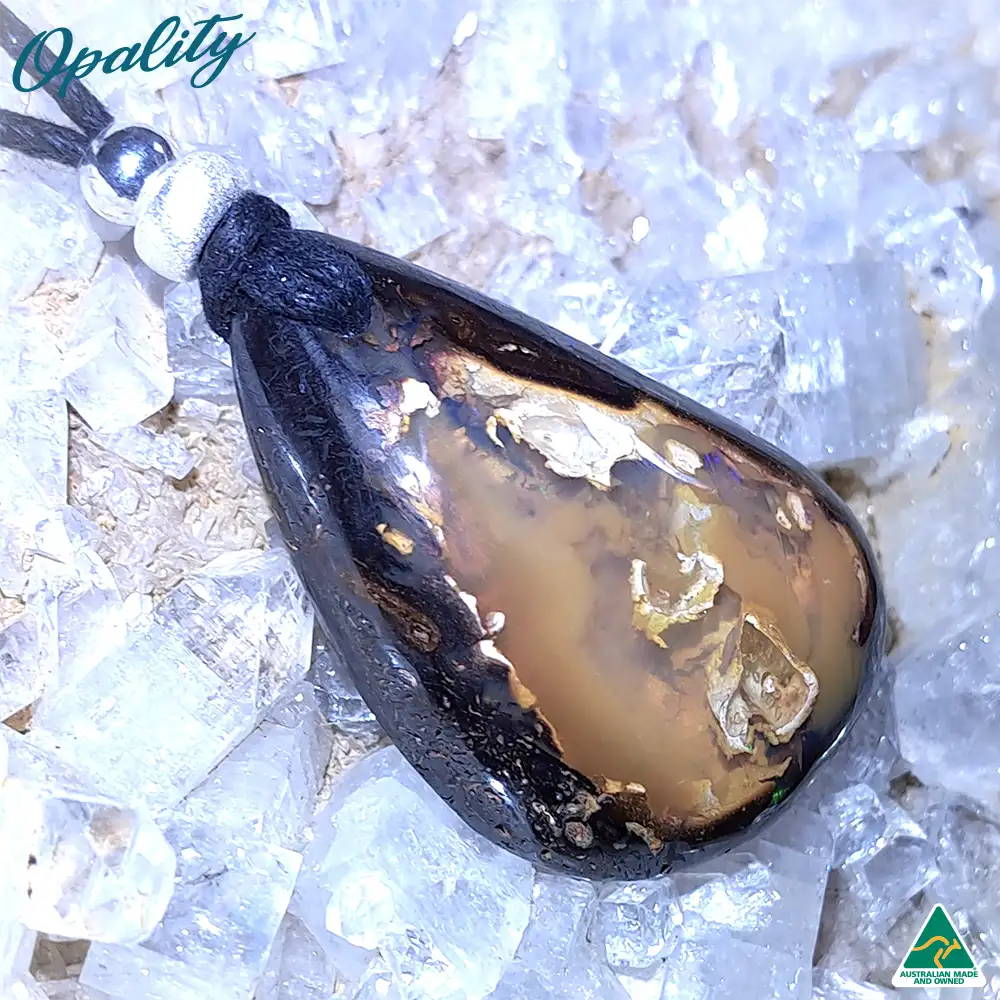 Natural Solid Queensland Yowah Nut Boulder Opal Pendant with adjustable waxed cotton cord.