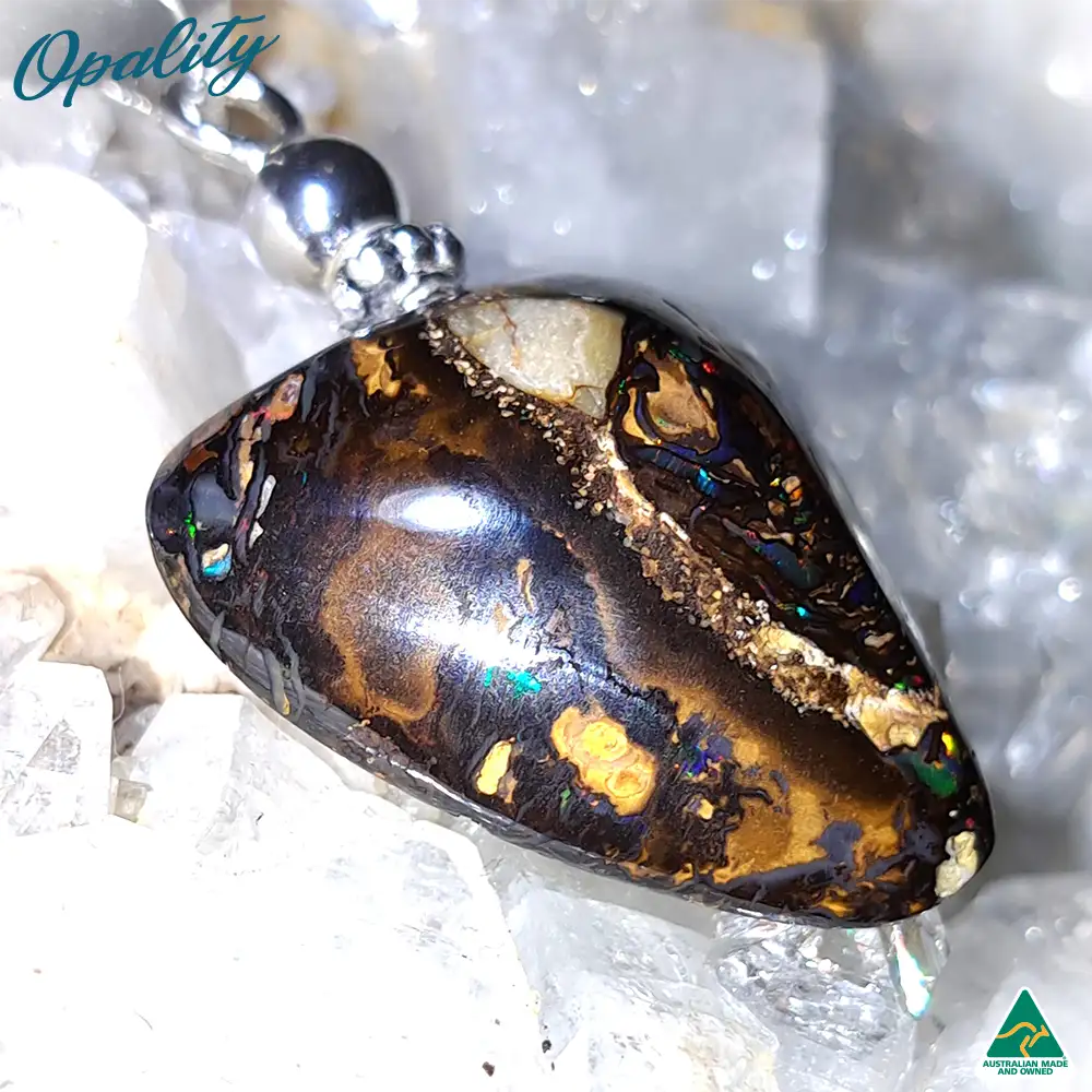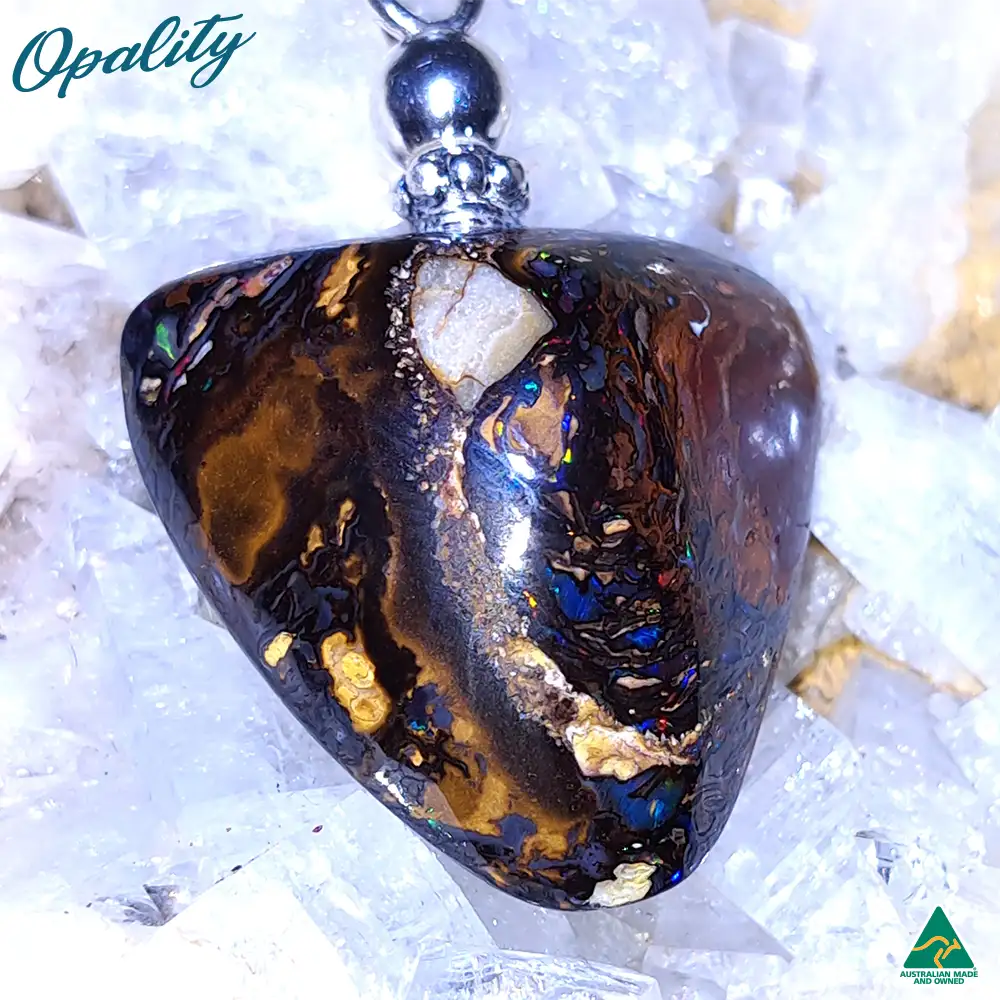 Natural Solid Queensland Yowah Nut Boulder Opal Double-sided Pendant with a Sterling Silver Bail.